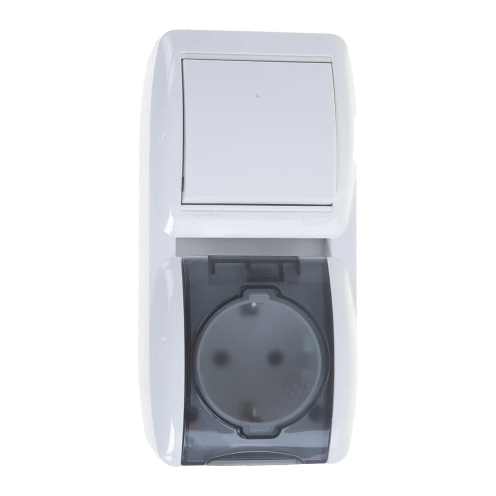 Розетка та 1 кл. вимикач із з/к, кришкою Lezard Nata вертикальний білий, 710-0200-172