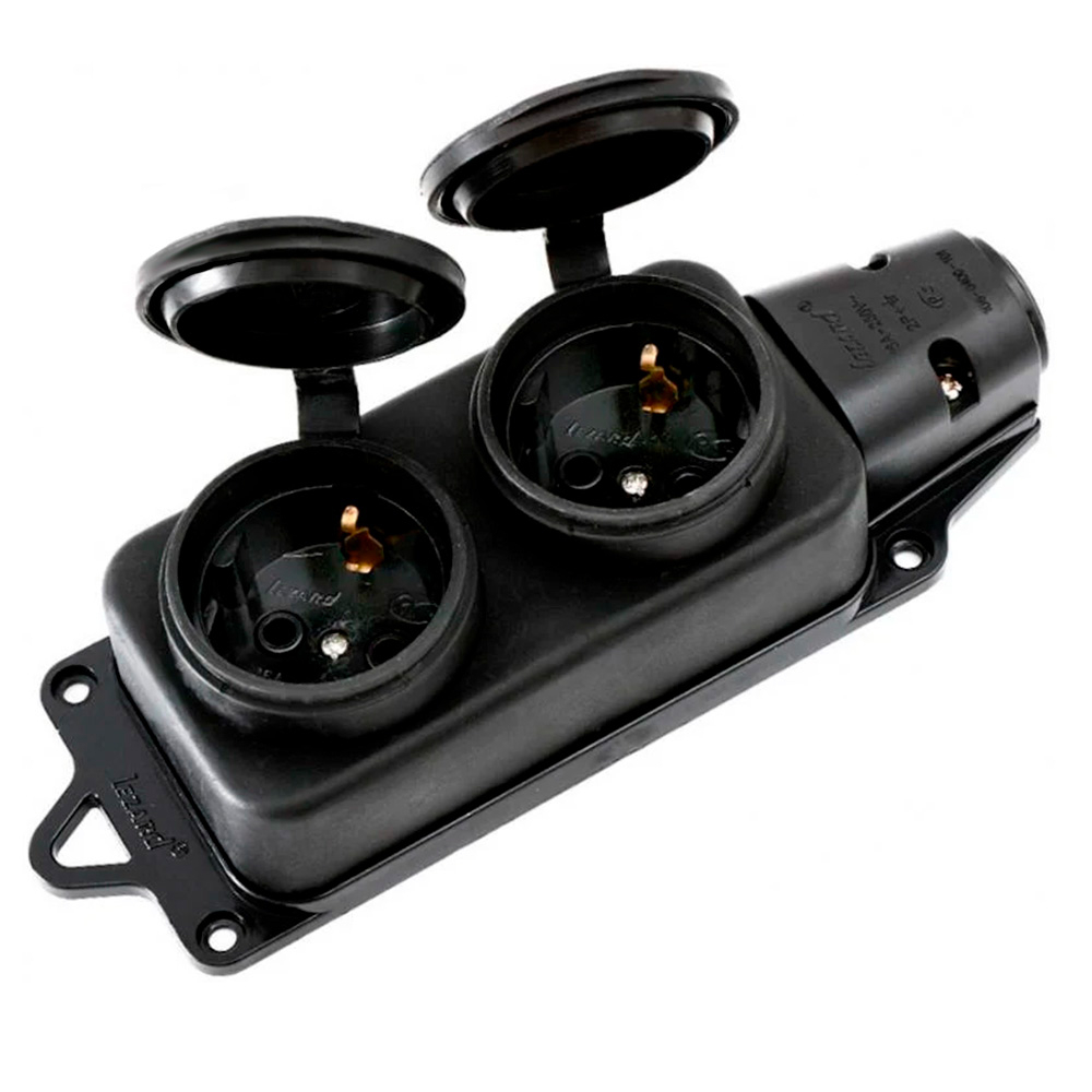 Розетка зовнішньої установки подвійна LEZARD, із заглушками 2Р+РЕ, каучук, 106-0400-0110