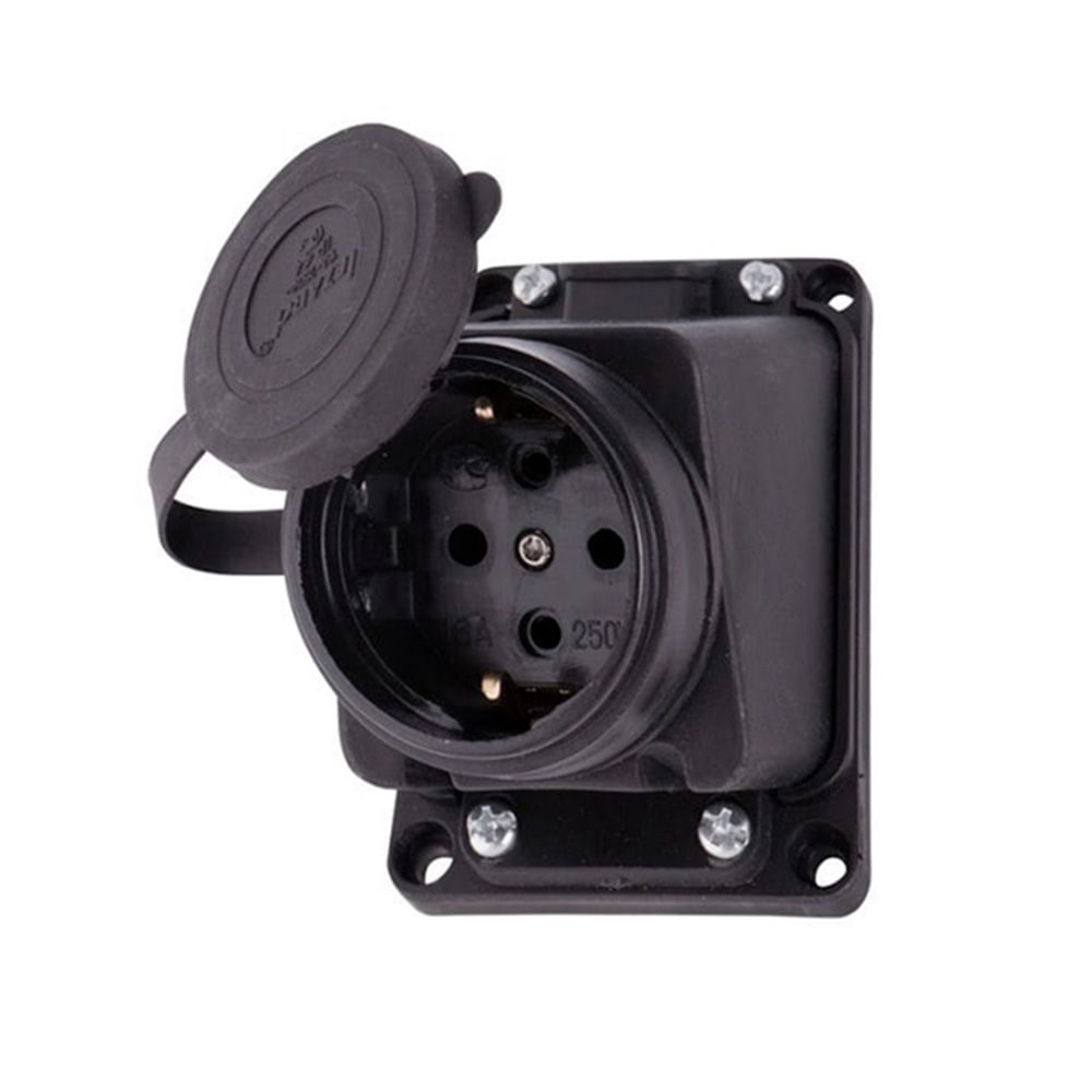 Розетка зовнішньої установки похила LEZARD, із заглушкою, 2Р+РЕ 1х16А 220-240V, каучук, 106-0400-0104