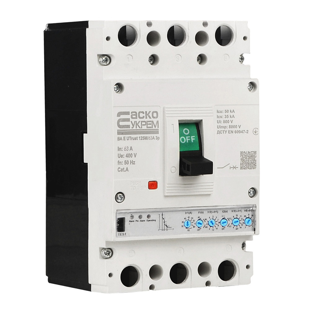 Силовий автоматичний вимикач АСКО-УКРЕМ UTrust 3P, 63A, AC 400 50кA, з електронним розчіплювачем, A0010260002