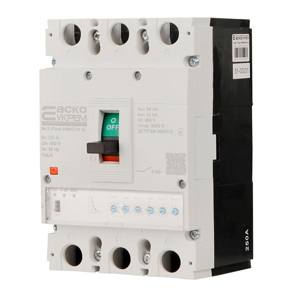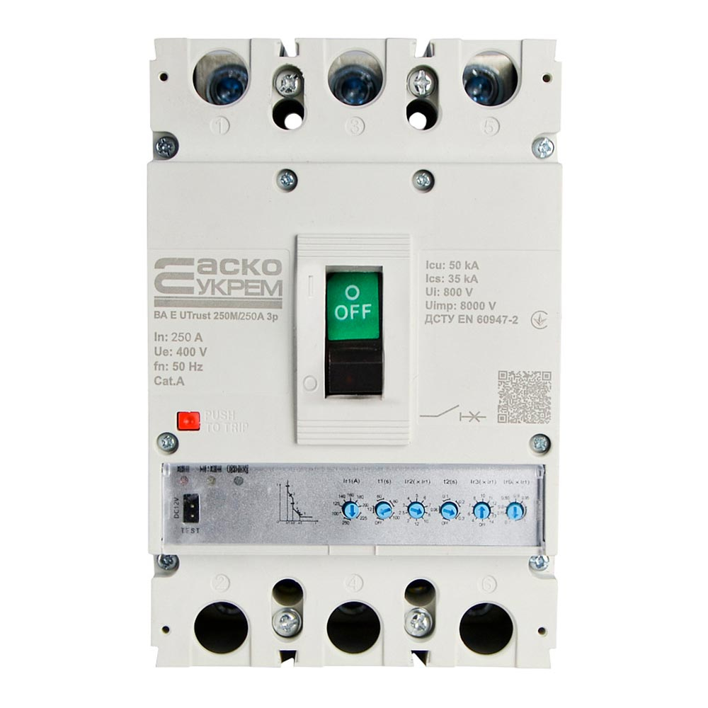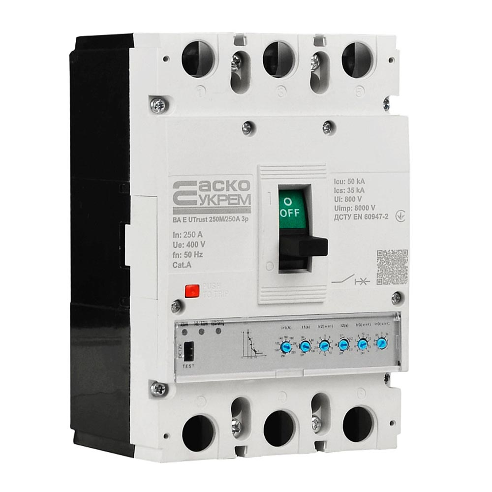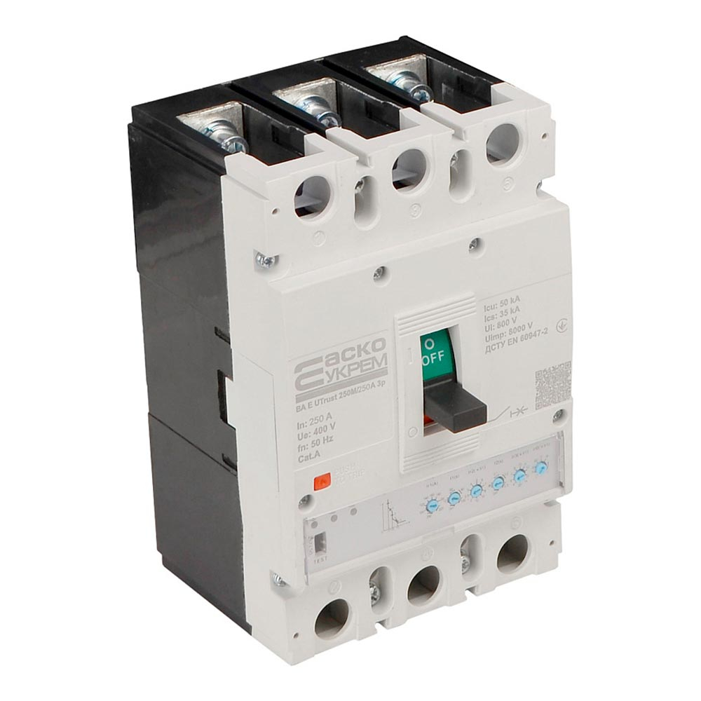 Силовий автоматичний вимикач АСКО-УКРЕМ UTrust 250M/250А, AC 400 В, 250 А, 3P, з електронним розчеплювачем, A0010260004