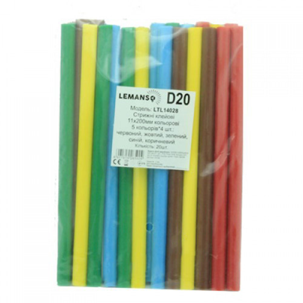 Стрижні клейові Lemanso, 200х11мм (ціна за пачку 20шт.) кольорові, LTL14028