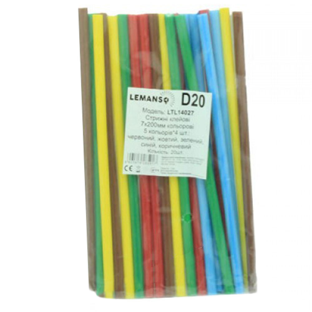 Стрижні клейові Lemanso, 200х7мм (ціна за пачку 20шт.) кольорові, LTL14027