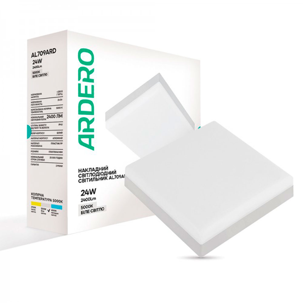 Ви можете придбати Світильник світлодіодний FERON AL709ARD, 24W, 5000K, 2400Lm, квадратний, накладний, 170x40мм, 7816 та багато інших товарів у інтернет-магазині “Електропроводка” вигідно, за суперціною, з доставкою, у Запоріжжі, Києві та Україні зробив замовлення на сайті або зателефонувавши нашим менеджерам по телефонам, вказаним у розділі "Контакти"
