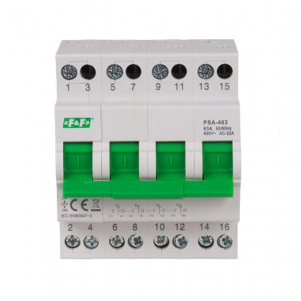 Перемикач перекидний F&F PSA-463, 4P, 63A, 1-0-2, мережа-генератор