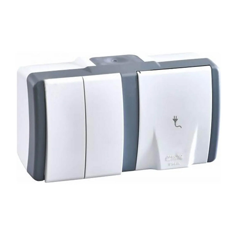 Вимикач 2кл+ розетка 1-а с з/к Mono Electric, OCTANS, IP54, біло-сірий, 154-020001-181