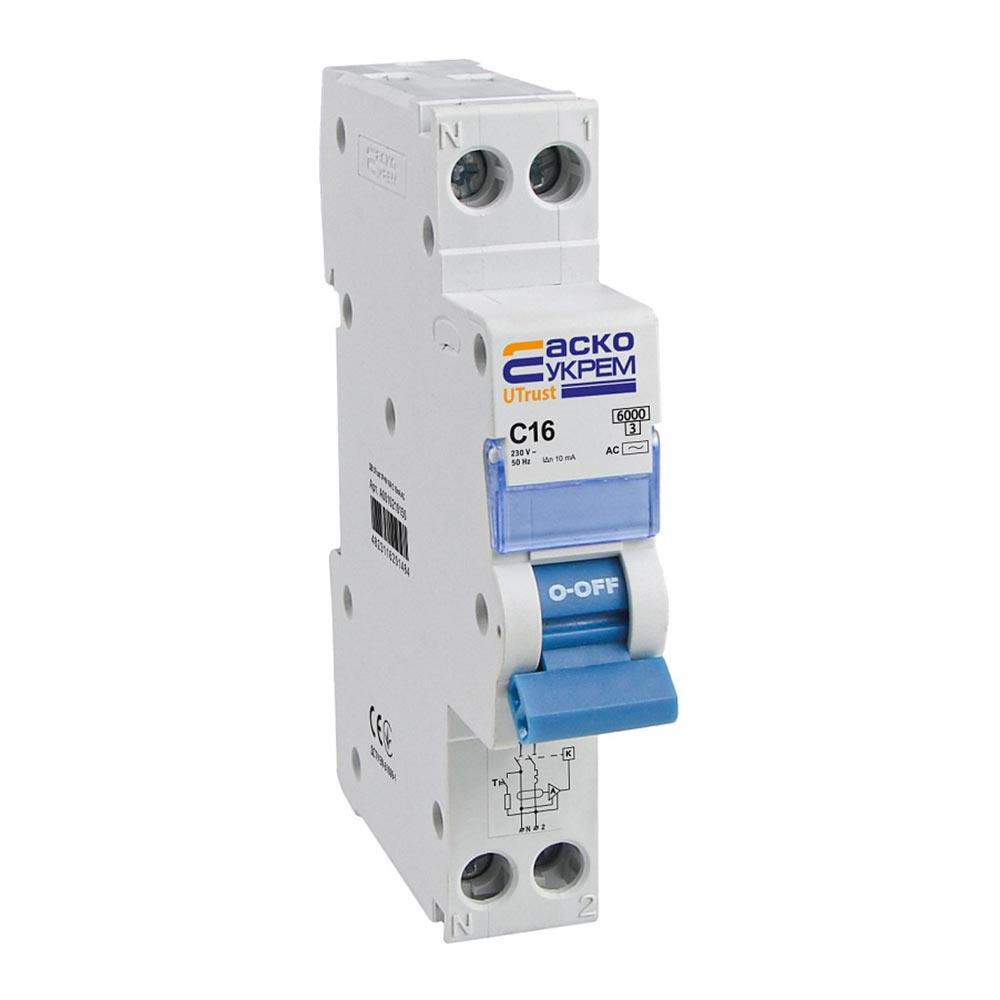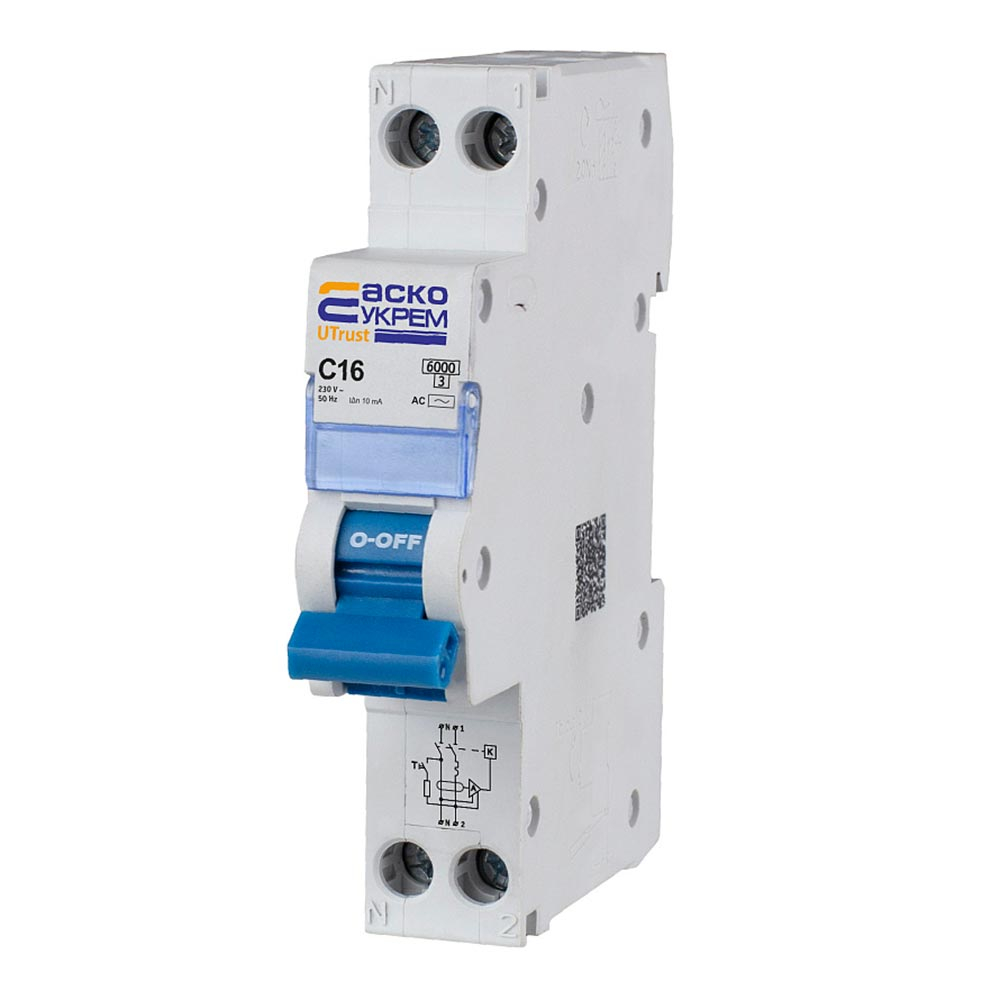 Устройство защитного отключения ДВ АСКО-УКРЕМ UTrust 1P+N (18 mm) 16А C 10мА AC, A0010210150