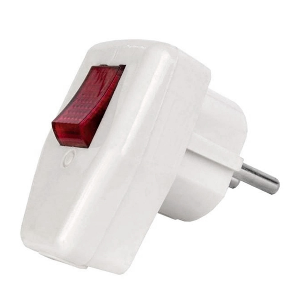 Вилка с заземлением Lemanso + кнопка красная / LMA002