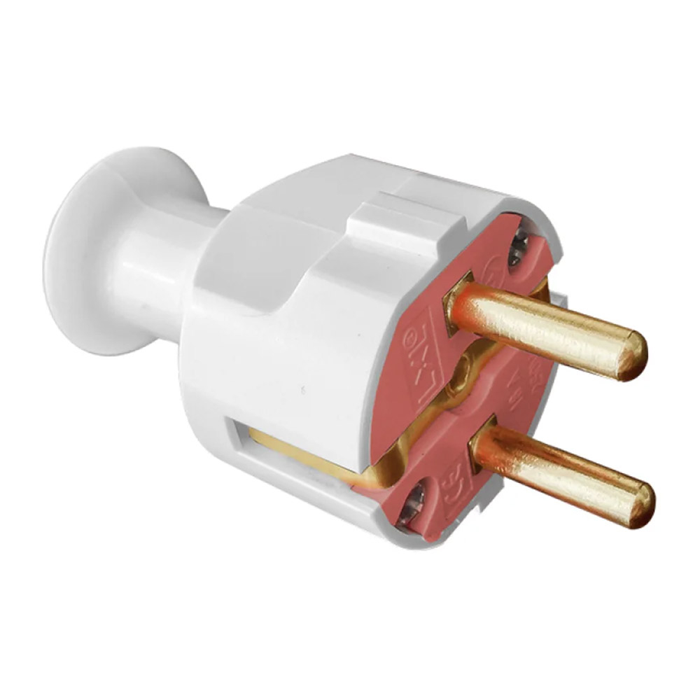 Вилка штепсельная LXL 326WHP, с заземлением, белая