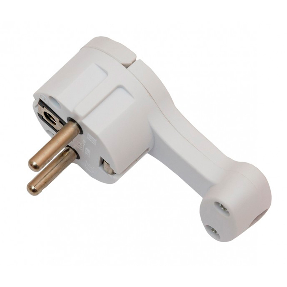 Вилка Luxel угловая плоская с заземлением, белая, 1034