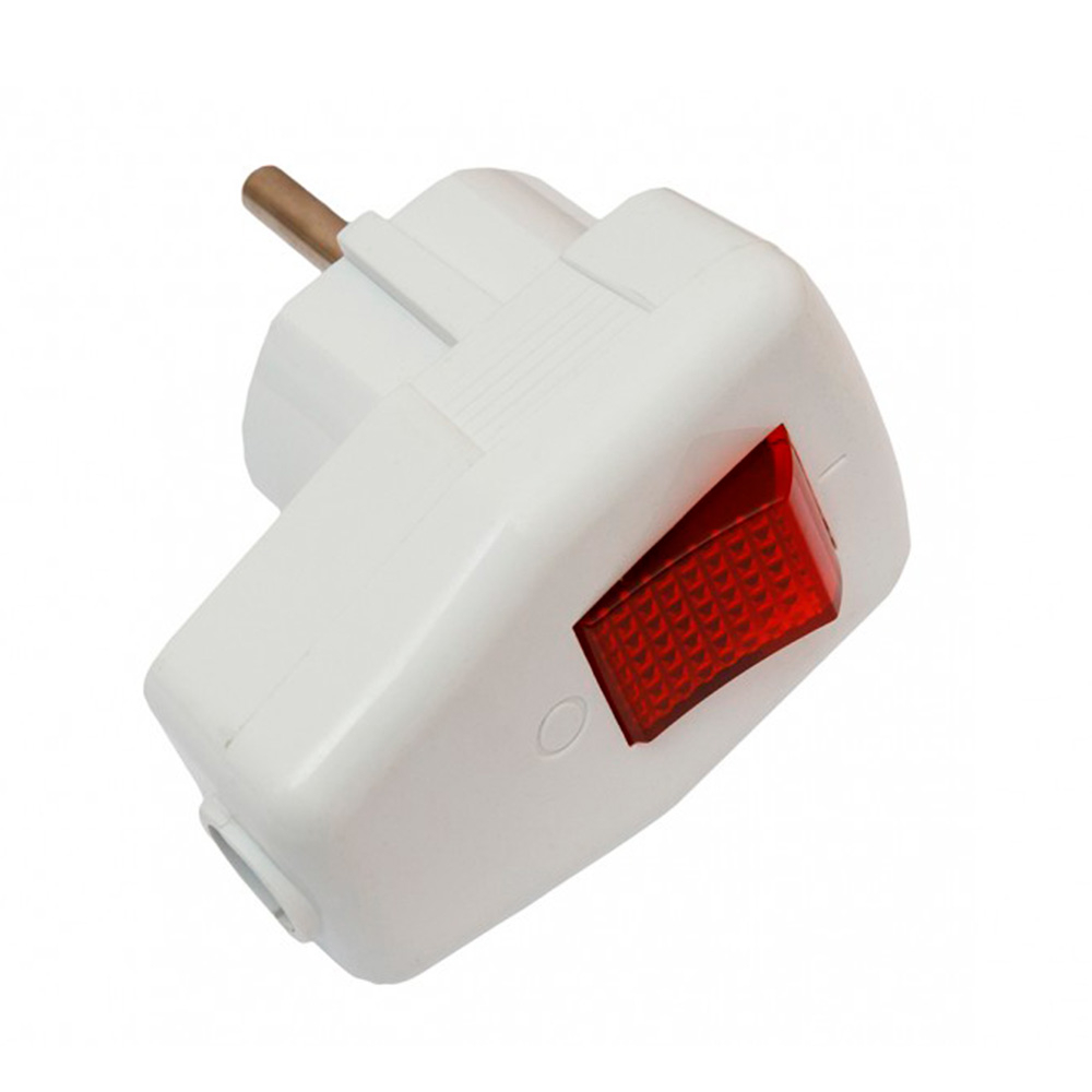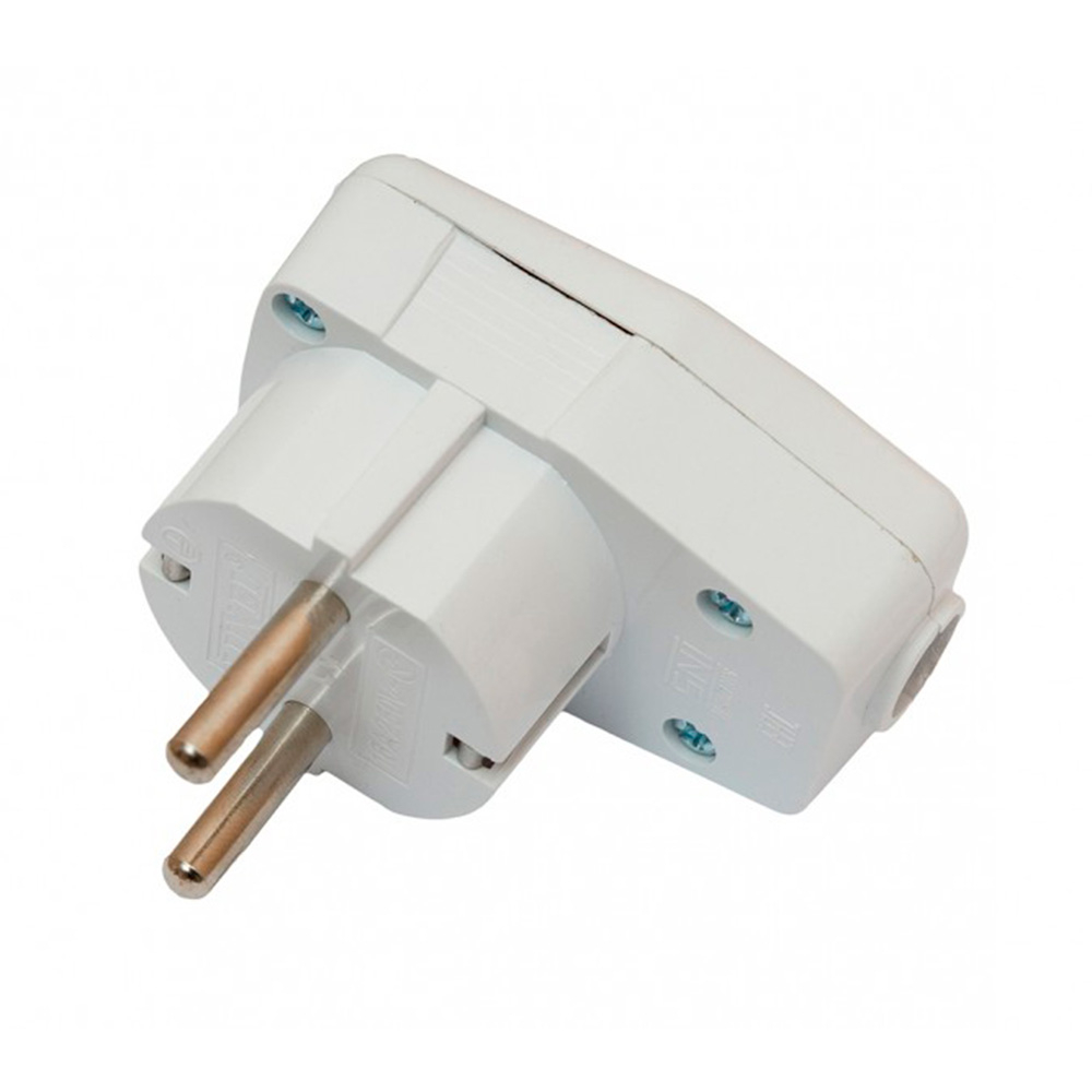 Вилка Luxel угловая с заземлением и кнопкой, белая, 1035