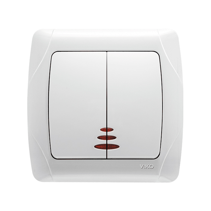 Двухклавишный выключатель с индикацией скрытой установки Carmen 90561050 (VIKO) предназначен для управления освещением люстр, бра и прочих световых приборов путем включения-выключения питающего провода. Для удобства обнаружения выключателя в темное время суток модель Carmen 90561050 имеет подсветку (индикацию).